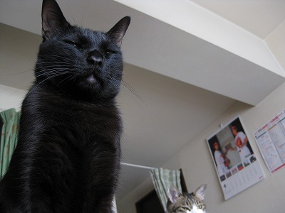 缶詰待ち。 ネネは薬を毎日飲んでます。 カリカリ餌に混ぜる方法ですが、よけて食べない時も・・・。 ネコ缶なら間違いなく食べるので、たまにネコ缶。 ちよたとブブにもあげます。 ブブは準備を始めるとサッと定位置の冷蔵庫の上へ。 「まだかニャ?」鼻をフガフガして待ってます。