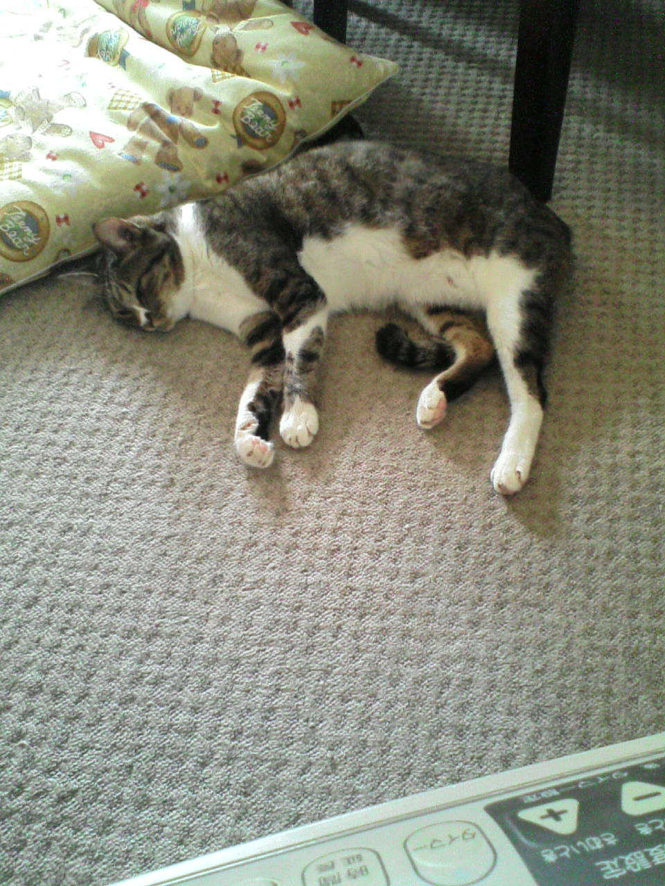 ヒーター前の椅子の上。一番人気の場所です。 ちよた、ゆるゆるです。