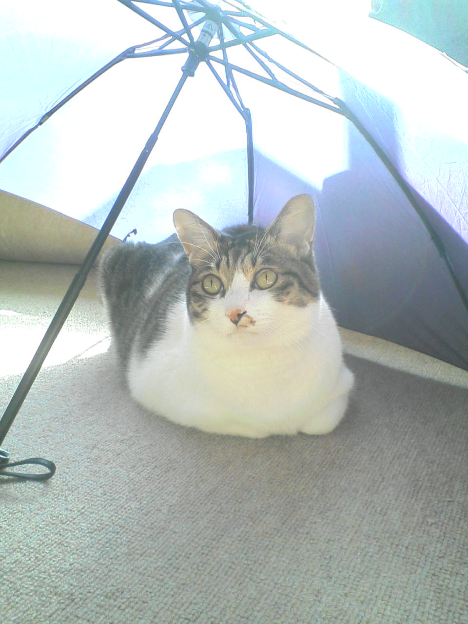 日当たりのいい部屋で傘を干してたら、ちよたが雨宿りしてました…。
